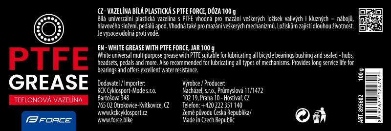 Ke stažení: https://www.kckcyklosport.cz/ImgGalery/Img1/files/895602_BL_mazivo_FORCE_bila_plast_vazelina_s_PTFE.pdf8592627124792169