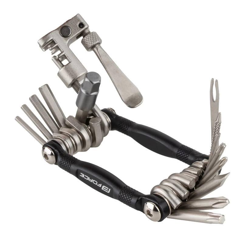 Multifunkční sada obsahuje 16 nástrojů v kompaktním provedení, včetně nýtovače řetězu a různých klíčů pro široké využití při opravách. zobrazit celý popis