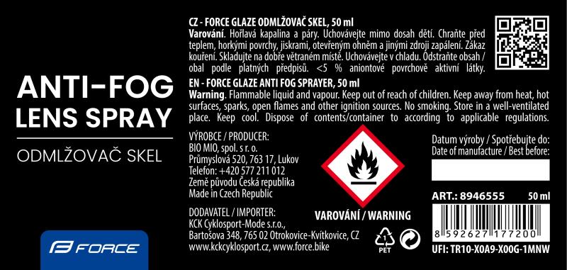 Force Odmlžovač skel brýlí GLAZE, rozprašovač 50ml