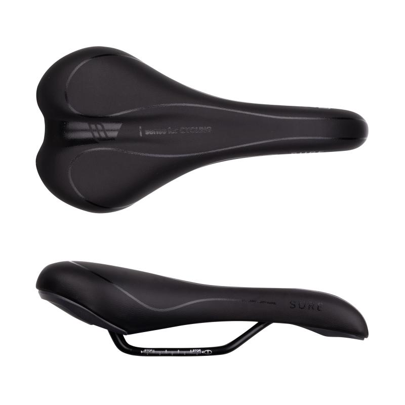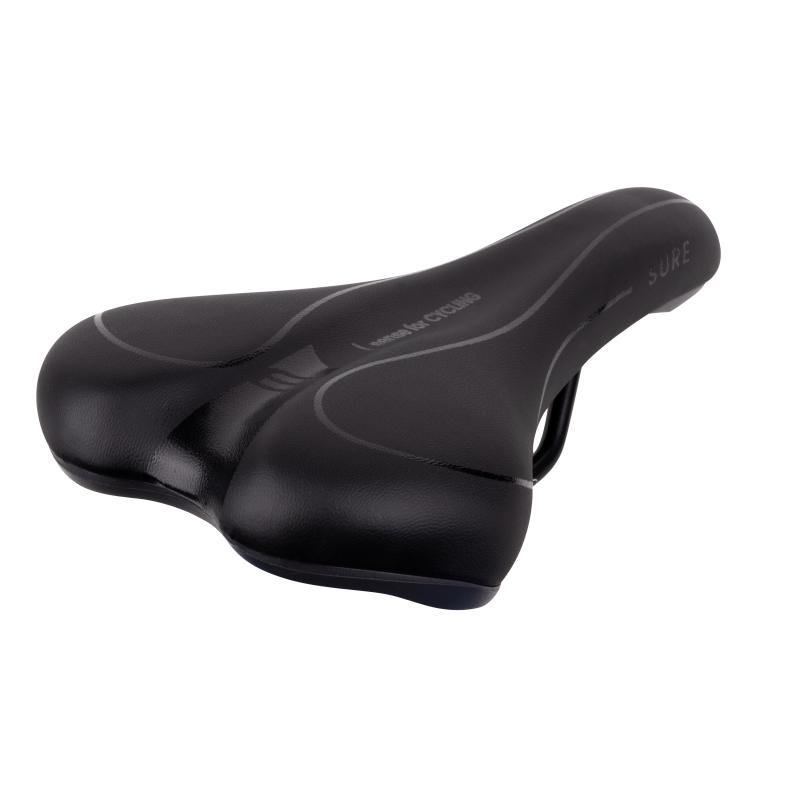 Lehké sedlo s nylonovým skeletom a ocelovými vzpěrami nabízí komfortní rozměr 275 x 135 mm a odolný povrch z umělé kůže. zobrazit celý popis