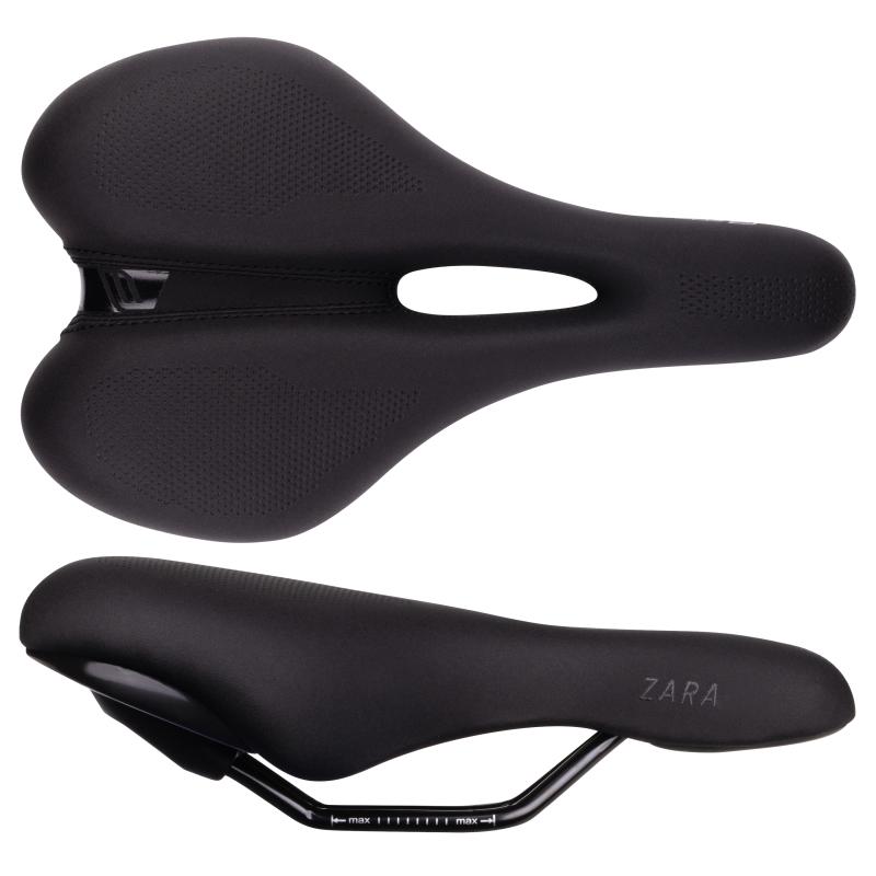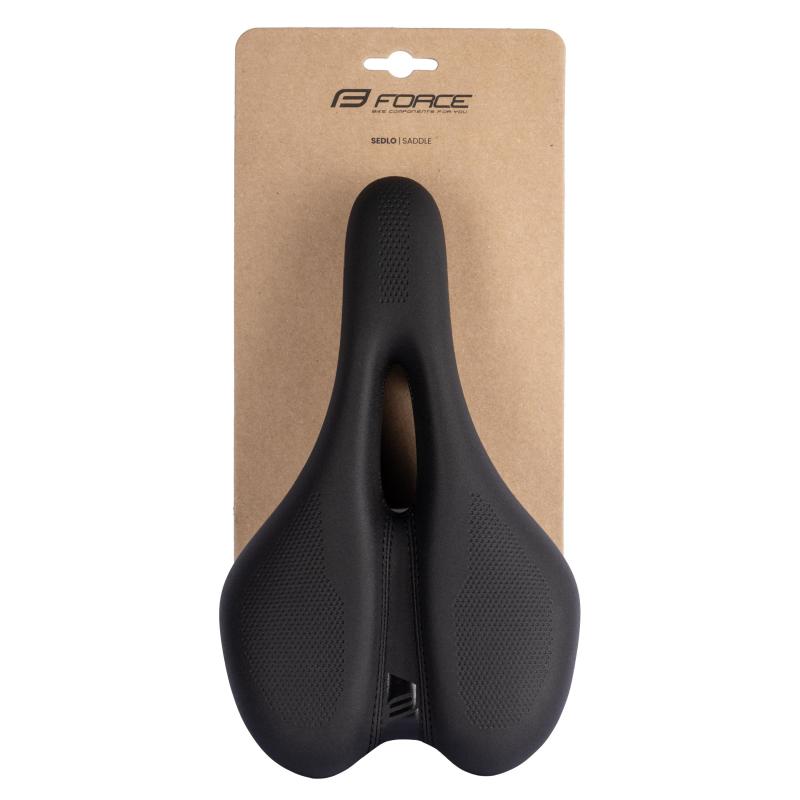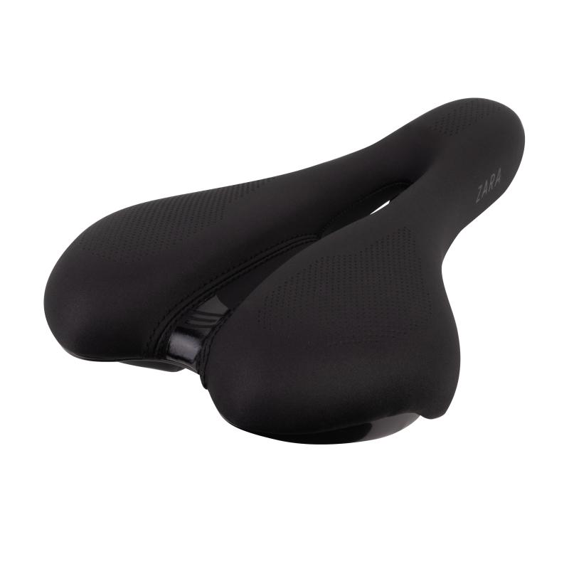 Sedlo je navrženo tak, aby poskytovalo vysoký komfort během delších jízd díky měkké a vysoké vrstvě polstrování na pevné nylonové konstrukci. Výrazný podélný otvor ve středu sedla pomáhá výrazně snížit tlak v citlivých oblastech, což ocení především cykloturisté a rekreační jezdci.