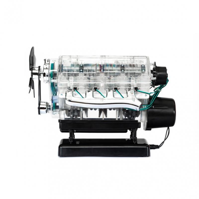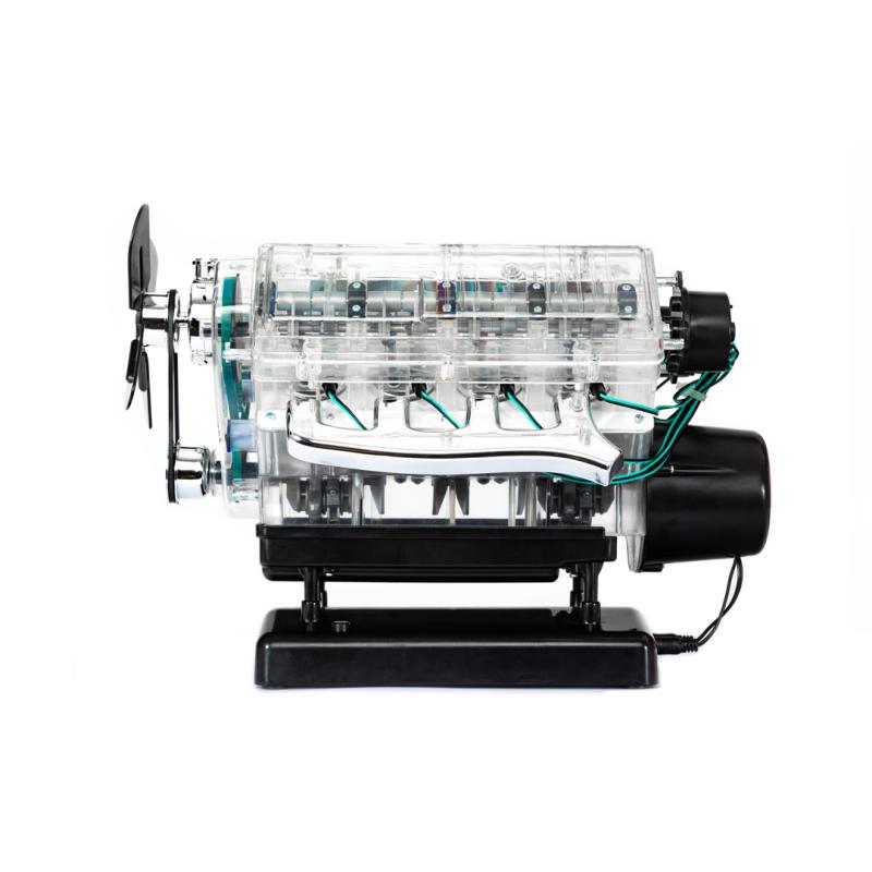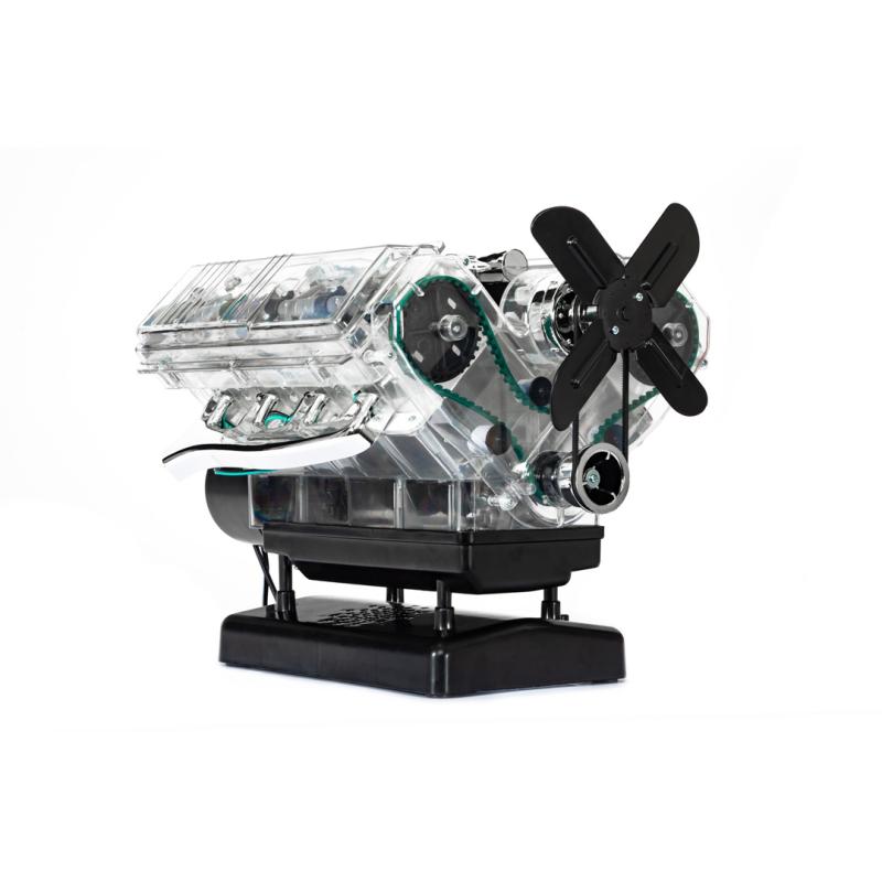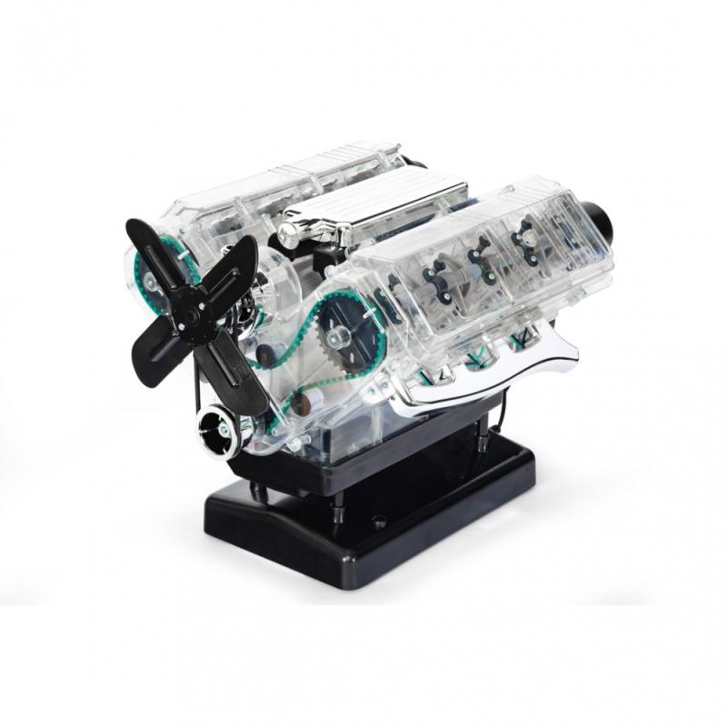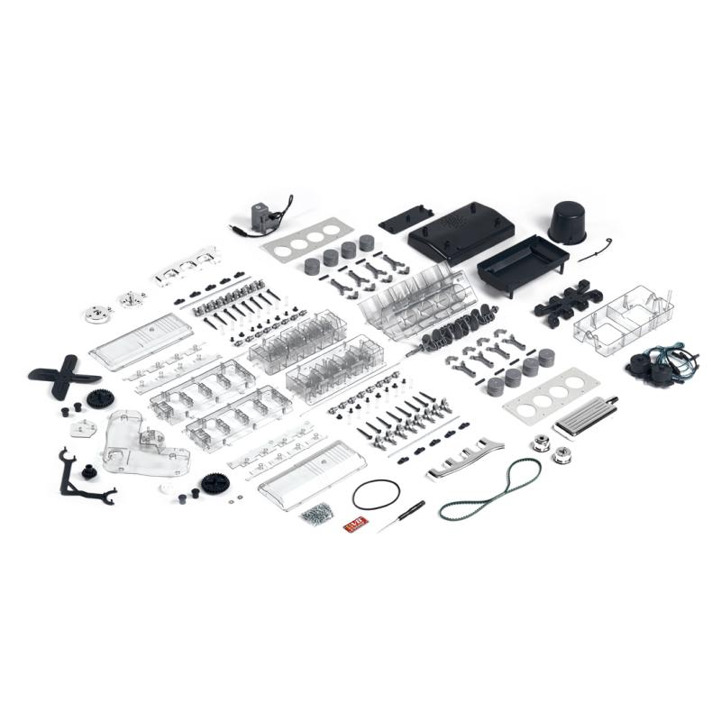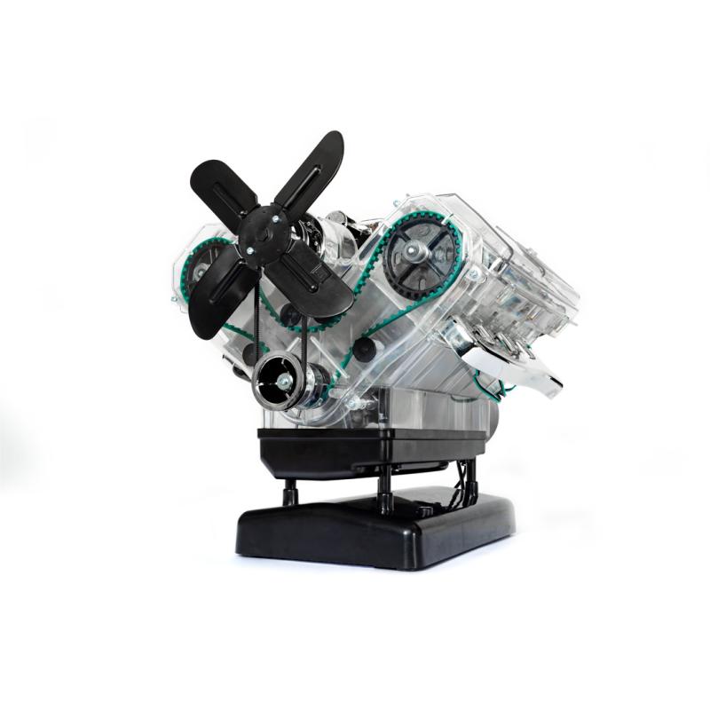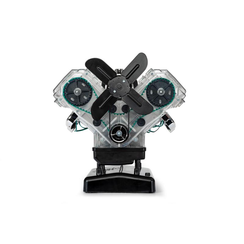 Motory V8 sú jedinečné: ich výkon, zvuk a vozidlá, ktoré poháňajú, sú legendárne. Preskúmajte, čo sa skrýva pod kapotou mnohých športových vozidiel! Postavte si plne funkčný model (mierka: 1:3) osemvalcového motora za iba 4 hodiny a zažite zábavu s technikou pre vás a vašu rodinu. Priehľadný funkčný model (mierka: 1:3) 8-valcového motora, ktorý poháňa legendárne vozidlá ako napríklad CA COBRA alebo FORD MUSTANG z viac než 250 dielov. Všetky diely sa pohybujú ako originál: kľukový hriadeľ, piesty, ventily, simulovaná zapaľovacia iskra, fungujúci rozdělovač zapaľovania, poháňané koleso ventilátora. So zvukovým modulom!