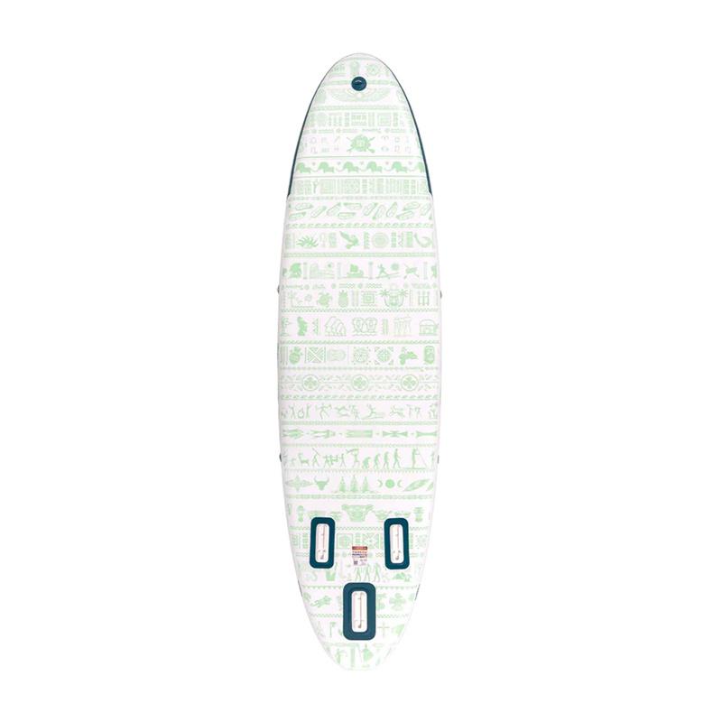 Ergonomická rukojeť umožňuje pohodlné přenášení a snadné vytažení z vody. Vestavěný tlakoměr umožňuje sledovat aktuální tlak vzduchu v desce, který by měl být mezi 12 a 15 PSI pro optimální tuhost a výkon na vodě. Flexibilní šňůry slouží k bezpečnému připevnění batohu nebo jiného vybavení a přídavný D-kroužek umožňuje instalaci kajakového sedadla.