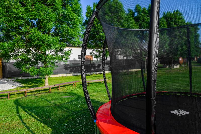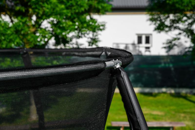 - Ochranná sieť trampolíny je z vnútornej strany konštrukcie, skákanie na trampolíne je tak bezpečnejšie