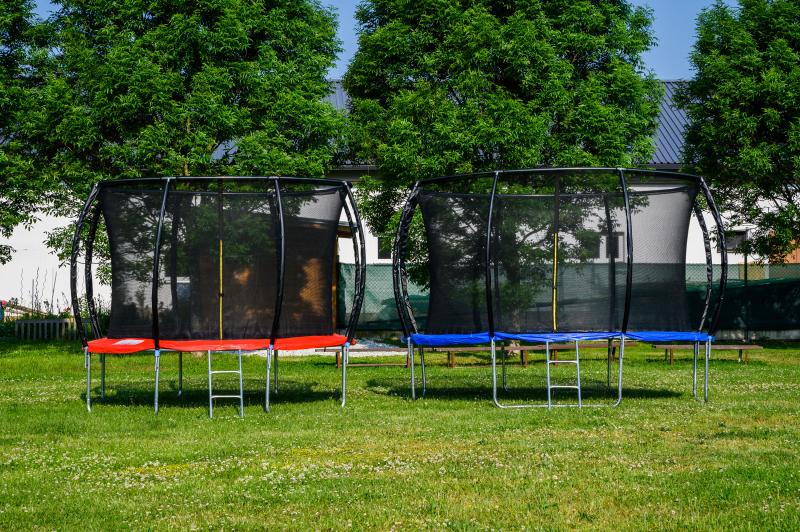 - Pružiny na trampolíne sú kryté dvojitou vrstvou – PVC a penou