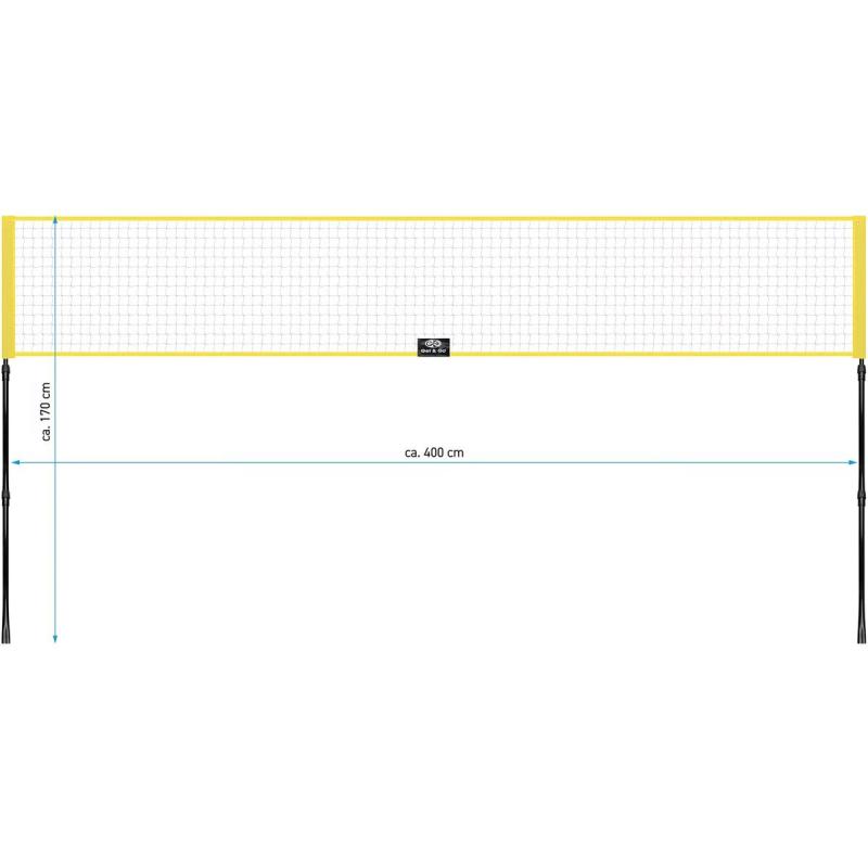 Sieť ľahko pripevníte pomocou šnúriek na slučky siete a tyče. Skvelé na tomto systéme je, že umožňuje znížiť sieť, čo je ideálne pri hraní s deťmi! Celá sada je zabalená v praktickom obale pre jednoduché uloženie a prenášanie. Hrať teda môžete kedykoľvek a kdekoľvek. Hmotnosť celého balenia je približne 1,35 kg.