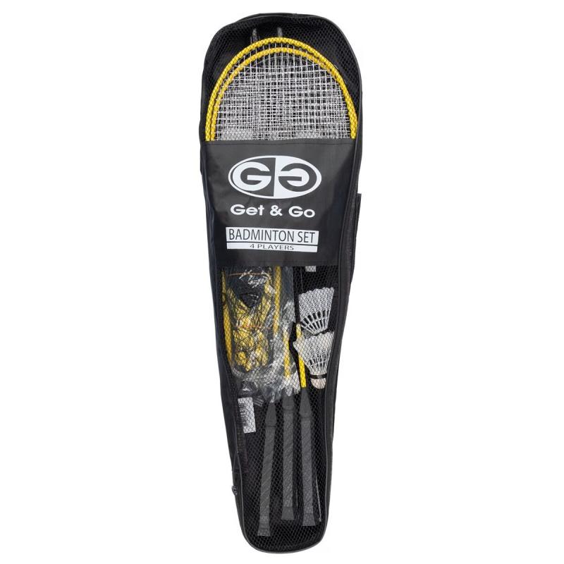Ak by ste si radi zahrali bedminton s rodinou či priateľmi, je pre vás ideálnou voľbou bedmintonová sada až pre 4 hráčov Get & Go Game Set 4P. Tento set pre rekreačnú hru obsahuje štyri bedmintonové rakety (hmotnosť 90 g, dĺžka 655 mm), dva nylonové bedmintonové loptičky, sieť s hliníkovou konštrukciou a štyri plastové kotvy do zeme.Sieť ľahko pripevníte pomocou šnúriek na slučky siete a tyče. Skvelé na tomto systéme je, že umožňuje znížiť sieť, čo je ideálne pri hraní s deťmi! Celá sada je zabalená v praktickom obale pre jednoduché uloženie a prenášanie. Hrať teda môžete kedykoľvek a kdekoľvek. Hmotnosť celého balenia je približne 1,35 kg.