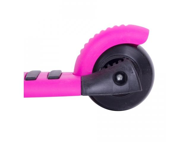 Koloběžka má tři kolečka, která zajišťují stabilitu a rovnováhu, a vybavena je nášlapnou brzdou, pomocí které dítě snadno zpomalí nebo zastaví. Přední kolečko má průměr 120 mm, zadní 100 mm, obě jsou z polyuretanu, který je odolnější než klasická guma a méně náchylný k praskání či opotřebení. Ložiska ABEC7 přispívají k hladkému a tichému chodu.