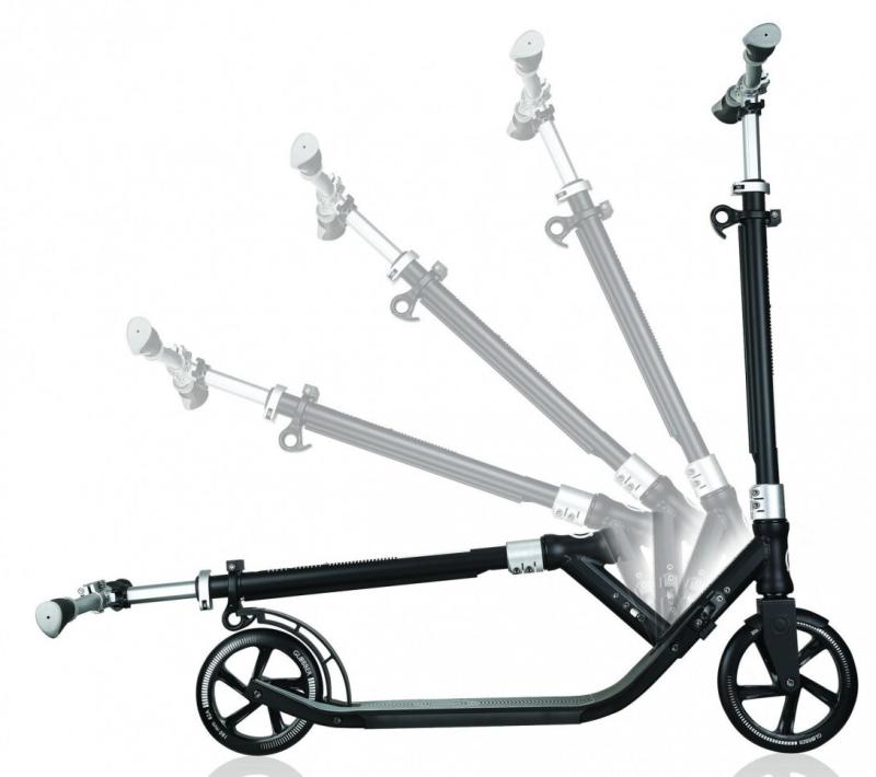 Praktickým prvkom je integrovaný stojan, ktorý umožňuje jednoduché parkovanie bez nutnosti opierania. Rukoväť je možné nastaviť v troch polohách, čo umožňuje prispôsobenie výšky riadidiel podľa vašej postavy a zabezpečuje pohodlný úchop.