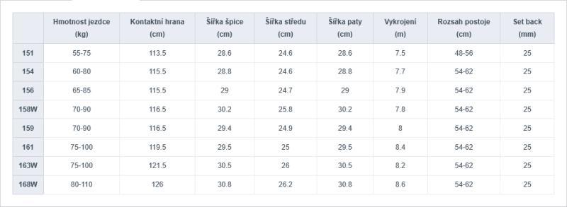 • Camber profil – stabilita, presnosť a dobrý odraz pri skokoch
