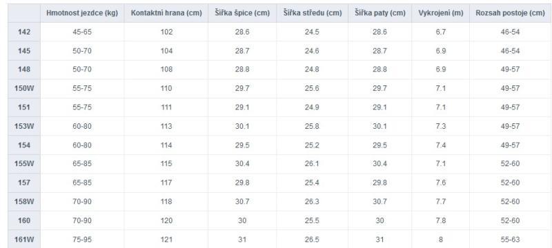 | Doporučená délka | Snowboard |