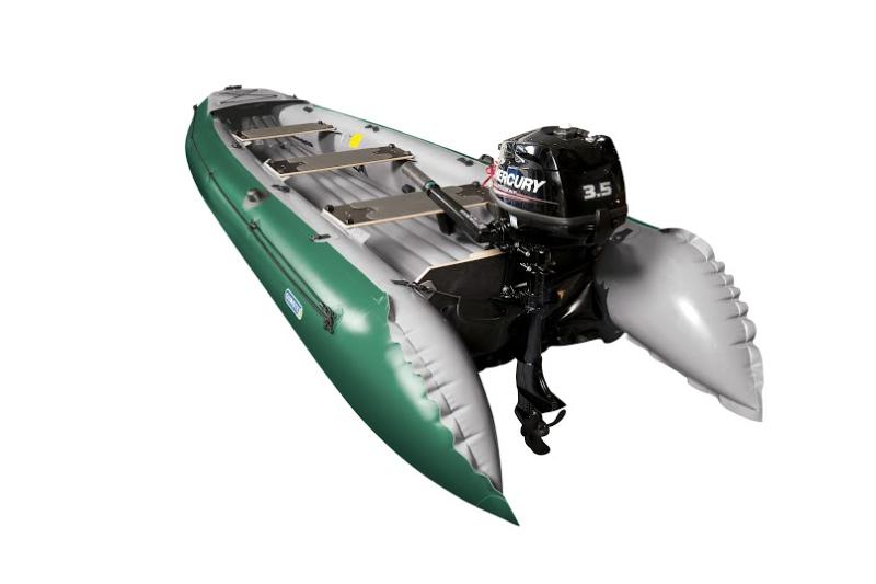 Hlavní materiál člunu je NITRILON®, třívrstvý laminát složený ze syntetické pryže na povrchu, pevnostní tkaniny uvnitř a vnitřní vrstvy PVC. Tento materiál je odolný vůči UV záření, oděru, soli i chemikáliím, snadno se udržuje a zachovává tvar i při dlouhodobém používání a vysoké zátěži. Zadní zrcadlo je navíc potaženo CR fólií (chloroprenová pryž), která zvyšuje odolnost proti nárazům, olejům a benzínu, což je důležité při montáži motoru a manipulaci s výbavou.