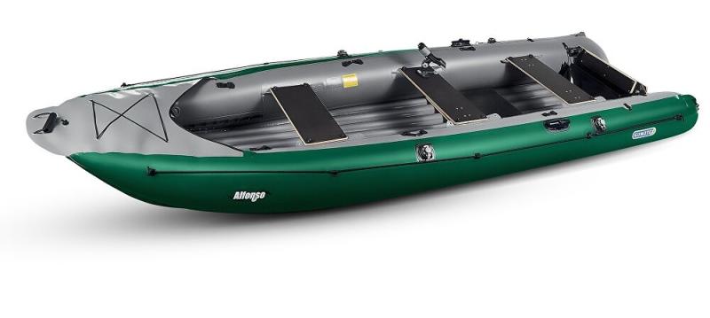 Gumotex Alfonso představuje všestrannou nafukovací kánoi určenou pro rybáře, rodiny i rekreační výlety po klidných či mírně divokých vodách. Díky délce 430 cm, šířce 125 cm a nosnosti 410 kg poskytuje dostatek prostoru pro až tříčlennou posádku a jejich vybavení. Robustní zadní zrcadlo umožňuje montáž motoru s výkonem až 5 hp (3,7 kW), přičemž je určeno pro motory s krátkou nohou a hmotností do 28 kg. Loď je vybavena pěti úchytovými základnami a držáky prutů Cannon, které usnadňují upevnění rybářského vybavení i dalších doplňků, aniž by omezovaly vnitřní prostor. Díky širokému trupu a plochému dnu nabízí výjimečnou primární stabilitu, což oceníte zejména při stání a rybaření. Vysoké boky a zvednutá přídě chrání před stříkající vodou, zatímco pevné dno zajišťuje snadné držení směru i za větru a ve vlnách.
