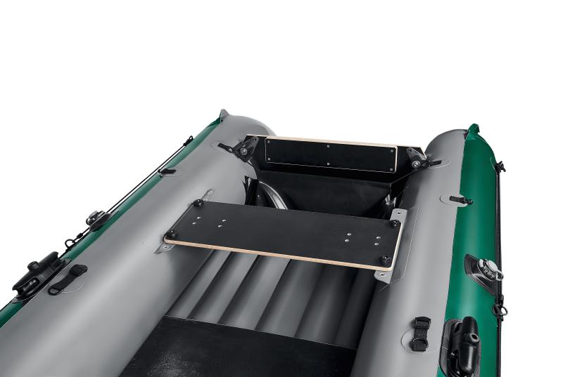 Široký trup a ploché dno zajišťují výjimečnou primární stabilitu, což oceníte zejména při stání a rybaření. Vysoké boky a zvednutá přídě chrání posádku před stříkající vodou. Díky pevnému dnu se loď snadno ovládá a drží směr i při větru. Zesílené zadní zrcadlo je určeno pro motory s krátkou nohou a maximální hmotností 28 kg.