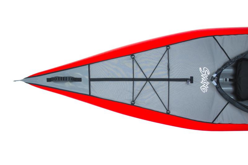 Nafukovací kajak SWING 1 je uzavretý kajak vhodný na rekreačné vychádzky a aktívne trávenie voľného času na prúdiacich riekach (až do stupňa WW2), jazerách a morských zálivoch.Kajak má systém výstuh, ktorý mu dodáva požadovanú tuhosť pre ľahkú ovládateľnosť a výbornú stabilitu. Vďaka svojej nízkej hmotnosti je kajak predurčený na výlety, kde je nutnosťou časté prenášanie lode. Uzavretý kokpit chráni kajakára aj jeho batožinu pred prenikaním vody do kajaku. Kajak je ponúkaný v jednosedadlovej aj dvojmiestnej verzii.