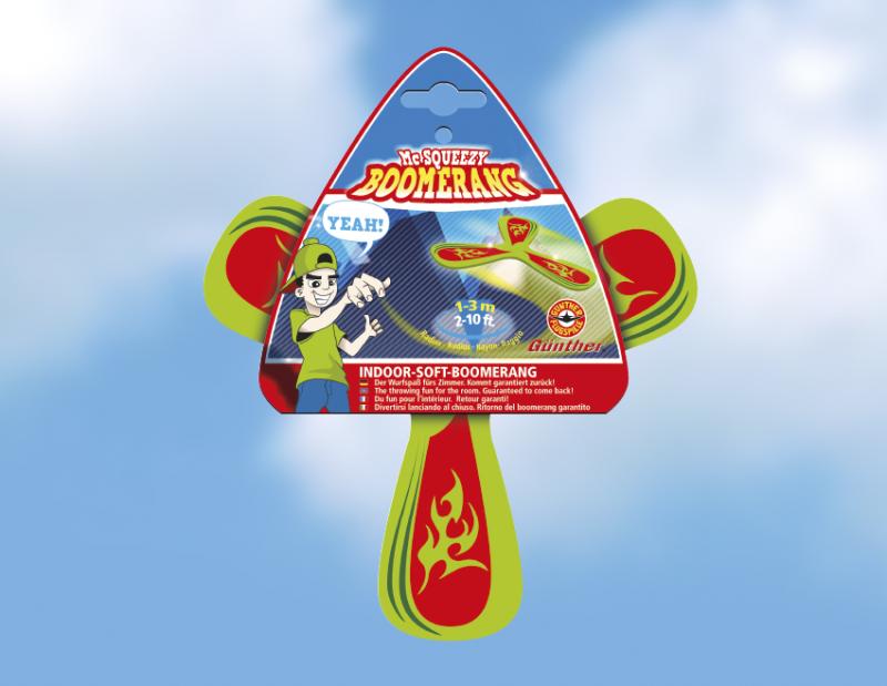 BOOMERANG MCSQUEEZY létá v rádiusu 1-3 metry, proto je vhodný i pro vnitřní použití.