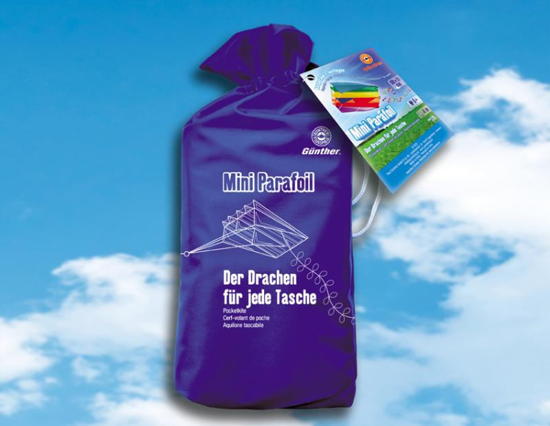 Létající drak pro děti Mini Parafoil 60x51 cm. Ideální drak do kapsy. Zobrazit celý popis