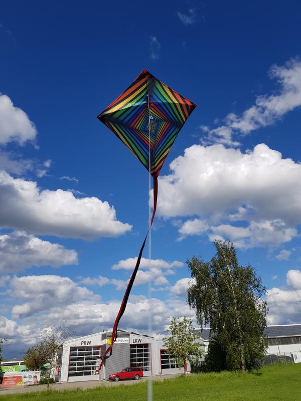 Lietajúci drak Vás s harmonickými tvarmi, jasnými farbami a geometrickými vzormi očarí pohľadom na oblohu, kde by ste radi zastavili čas. Pevná PE fólia,