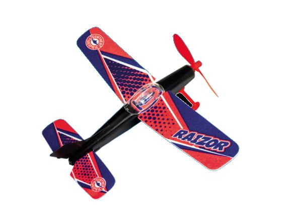 Model letadla na gumu Raizor s pohonem na gumový svazek.