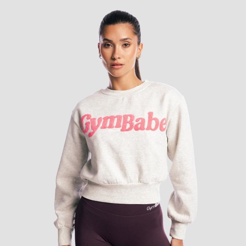 Tento štýlový kúsok má voľnejší strih (relaxed fit), ktorý poskytuje maximálnu slobodu pohybu. Zároveň vďaka elastickému spodnému lemu pekne drží tvar a vytvára ženskú siluetu napriek voľnému strihu. Dizajn dopĺňajú mierne balónové (puffy) rukávy, ktoré sú zakončené elastickými manžetami. Na prvý pohľad však zaujme textúrovaným, plyšovým logom "GymBabe", ktoré mikine dodáva jedinečný a hravý vzhľad.
