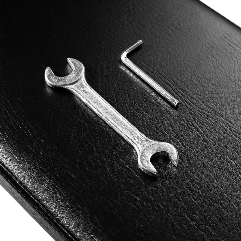 Nastavitelná lavice má měkké polstrování s kvalitním čalouněním, které se postará o vaše pohodlí během tréninku. Odolnost zase zaručí pevná ocelová konstrukce s maximální nosností 500 kg (váha uživatele + závaží). Čtvercové podstavce s protiskluzovou vrstvou navíc přispějí k maximální stabilitě při cvičení. Kromě toho je lavice pro snadný přesun vybavena praktickými kolečky, které najdete na zadním nosníku.