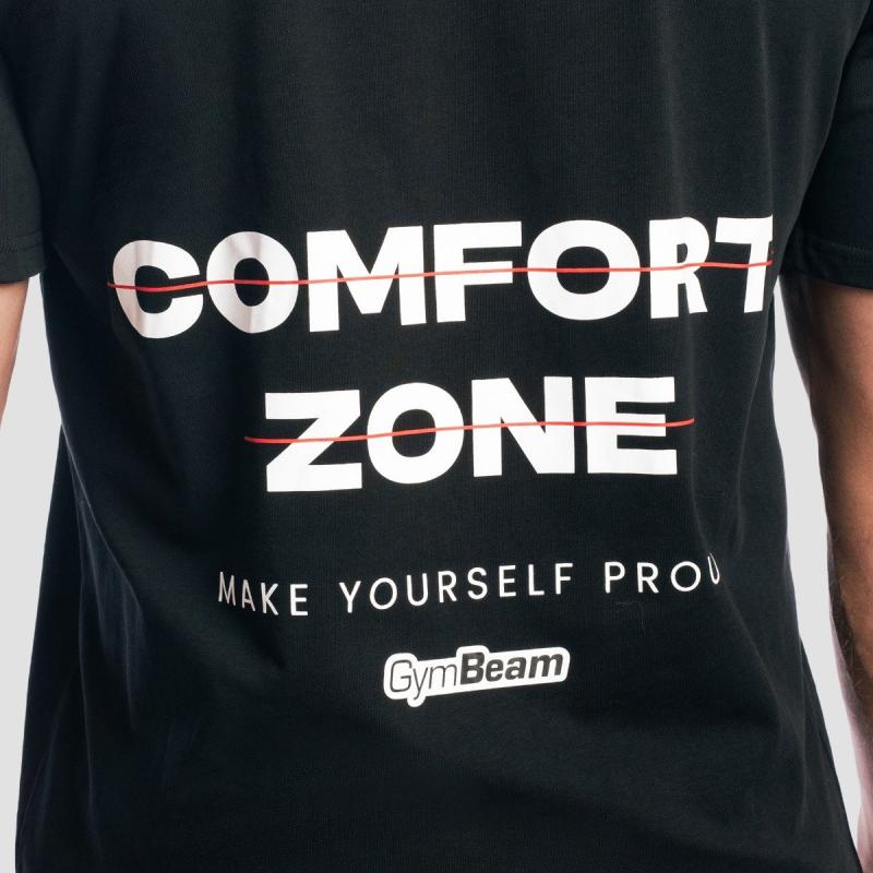 Toto pánske tričko sa vyznačuje trendy oversized strihom, ktorý poskytuje neobmedzenú slobodu pohybu. Dizajn je zámerne minimalistický spredu, kde ho zdobí len malé logo GymBeam. Výraznejšia je zadná časť s veľkým preškrtnutým nápisom "COMFORT ZONE" a motívom "MAKE YOURSELF PROUD", ktoré slúžia ako neustála pripomienka vašich cieľov.