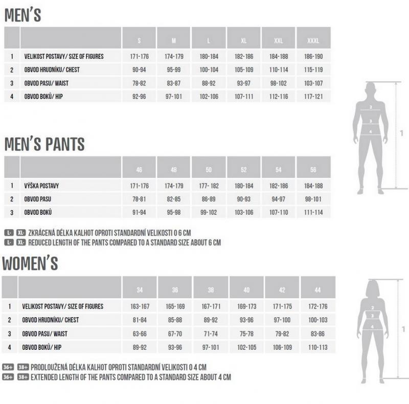 prednom diely, dve zadné vrecká, stehnové vrecko na zips, anatomicky