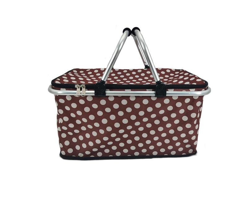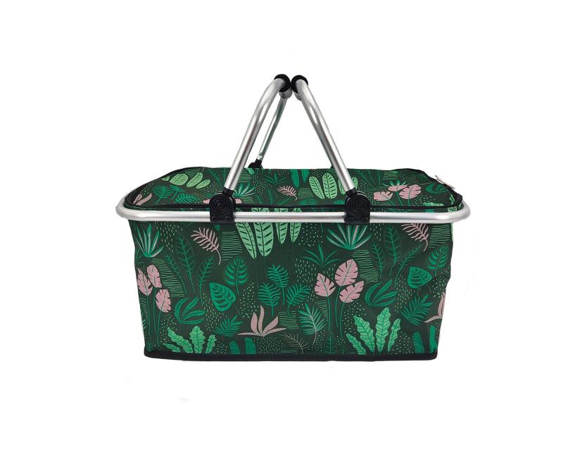 Lehký skládací košík s rozměry 48 x 24 x 28 cm, vyrobený z hliníku a omyvatelného polyesteru, ideální pro pikniky a snadné přenášení. zobrazit celý popis