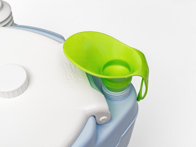 Novinkou je praktický nalievací lievik, ktorý uľahčuje dopĺňanie chemických náplní do toalety, a priehradka umiestnená na toalete, kam je možné uložiť toaletný papier alebo napríklad smartfón.
