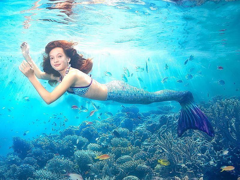 Kostým mořská panna Happy tails je navržen tak, aby při plavání dobře přilnul k tělu a byl pohodlný. Vždy zvolte odpovídající velikost podle tabulky velikostí.