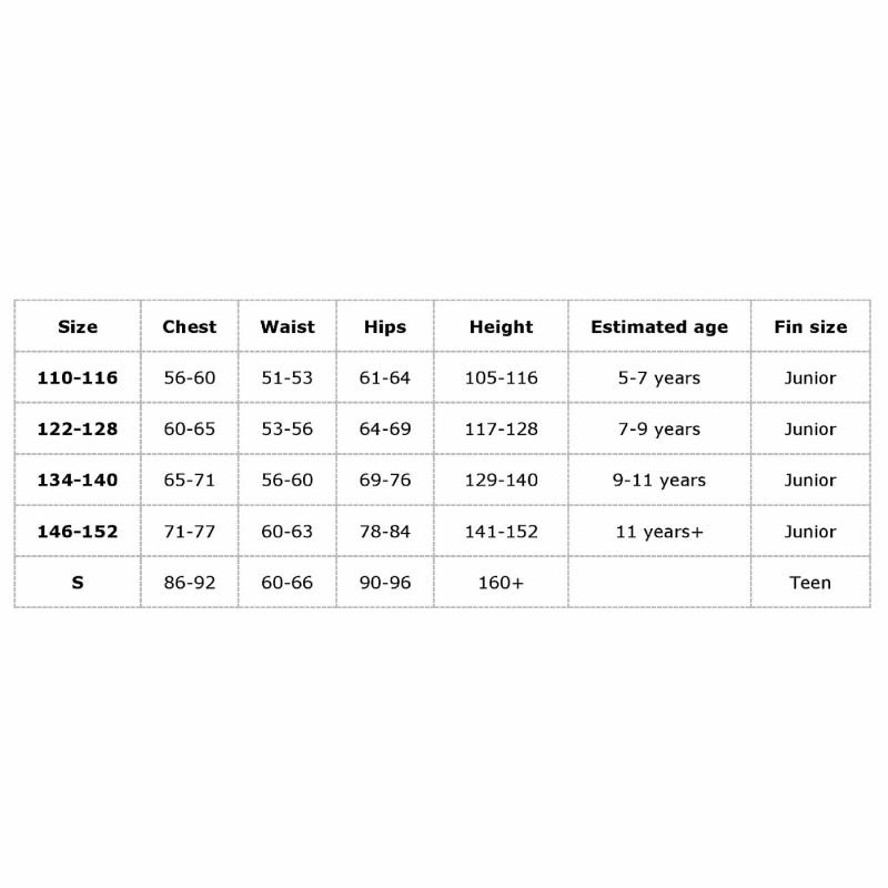 Pro velikosti kostýmu 110/116, 122/128, 134/140, 146/152 zvolte Monoploutev Junior.