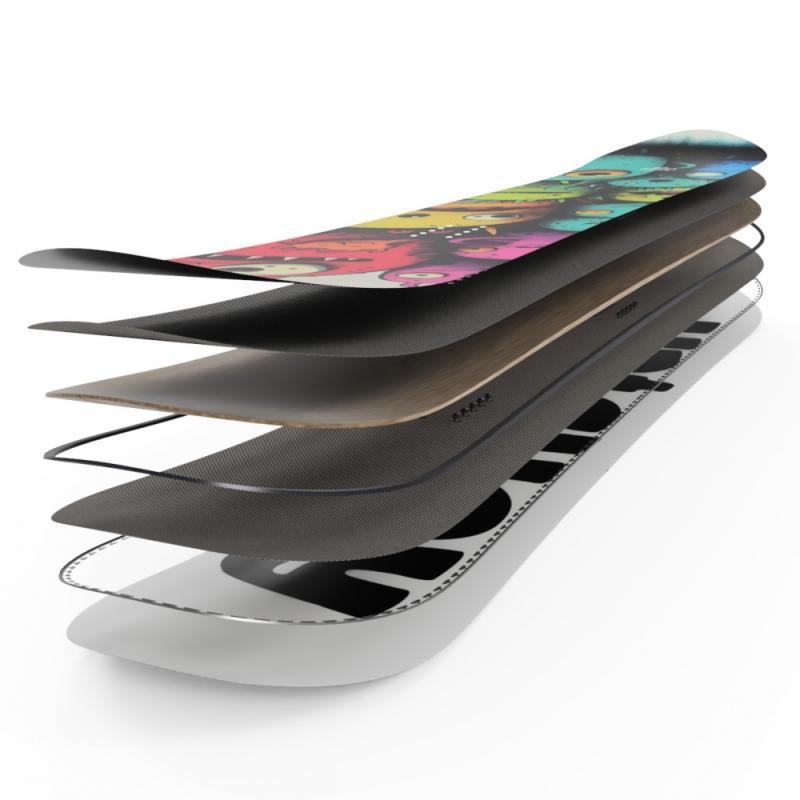 • Biax laminát - laminace dodává lehkou torzní flexi a kvalitní pop, což usnadňuje zatáčení a zvyšuje zábavu na sjezdovce i ve snowparku