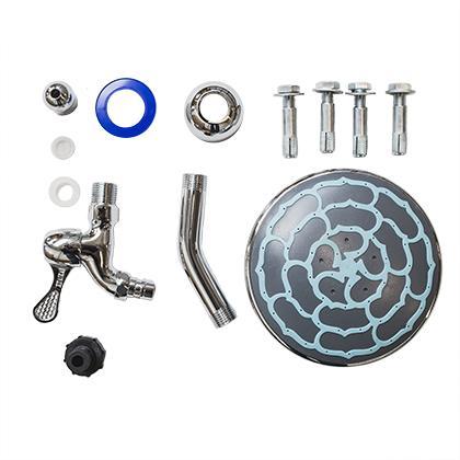 Solární sprchy jsou dodávány s návodem pro montáž a veškerým příslušenstvím - separátní kohoutek na oplach nohou, izolační páska, 4 úchyty (4 otvory + 4 šrouby) do pevného podkladu (beton atd.) a napojení na hadici. Jedná se o rozměrově prostorné zboží, které je přepravováno kurýrní službou.