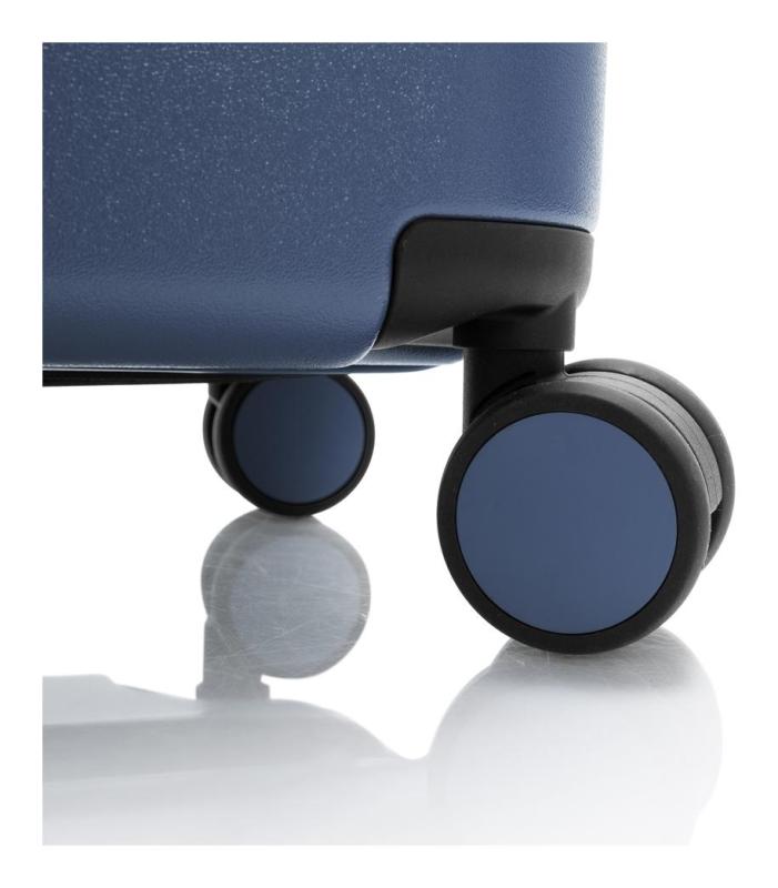 Skořepinový kufr na čtyřech kolečkách s integrovaným TSA zámkem a expandérem vyrobený z odolného polykarbonátu s jemnou texturou na povrchu.