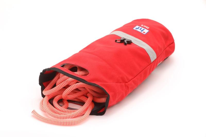 Pytlík Shark je konstruován podle principu „Clean Line“, který eliminuje vnější smyčky a minimalizuje riziko zachycení. Pro maximální efektivitu záchrany obsahuje vnitřní polstrovanou kapsu na karabinu, která ji chrání před nárazy a zajišťuje její rychlou dostupnost. Uzávěr na přezku v kombinaci s integrovaným madlem umožňuje přesné házení spodem i vrchem. Výrazná reflexní páska a signální barvy zaručují viditelnost v náročných světelných podmínkách. Lano samotné splňuje normu EN 1891, což jej řadí mezi certifikované pracovní a canyoningové pomůcky s velmi nízkou průtažností (3,6 %).