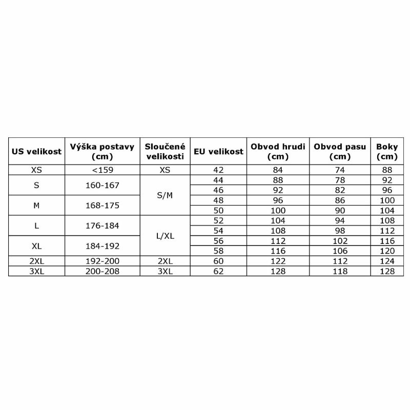 | Tabulka velikostí: | |