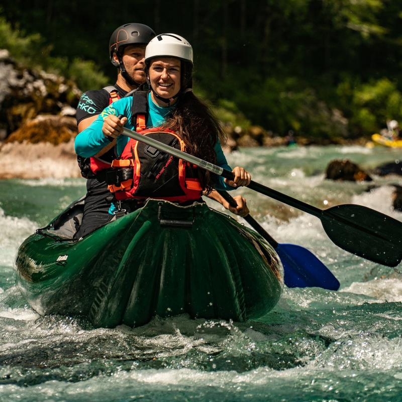 Helma na vodu s ochranou uší a pohodlnou lehkou konstrukcí. Součástí je dotahovací systém.