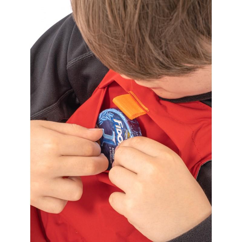 • Predná kapsa na suchý zips na desiatu a poklady nájdené počas prieskumu.