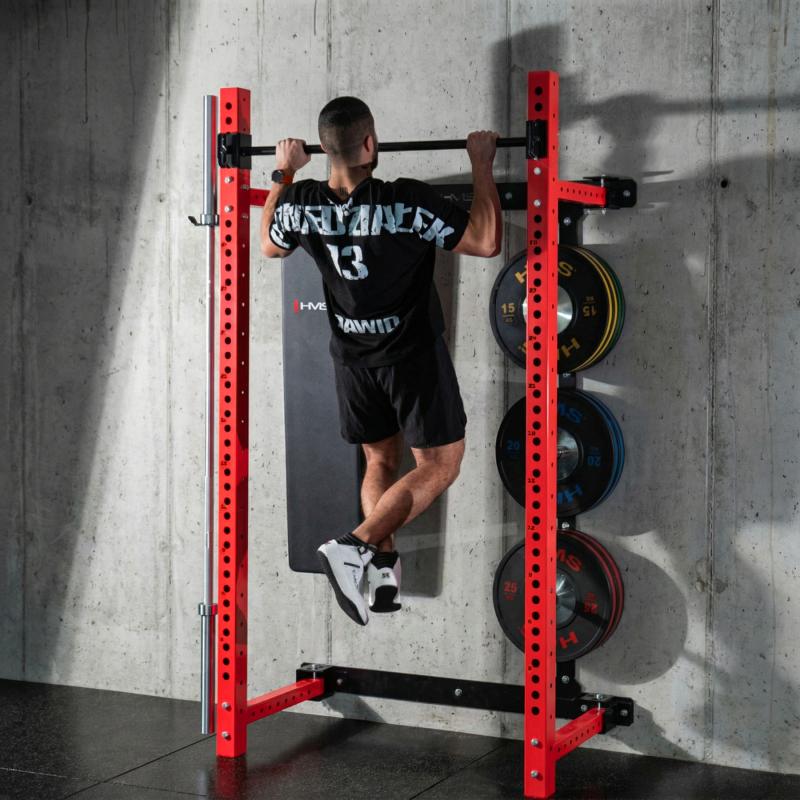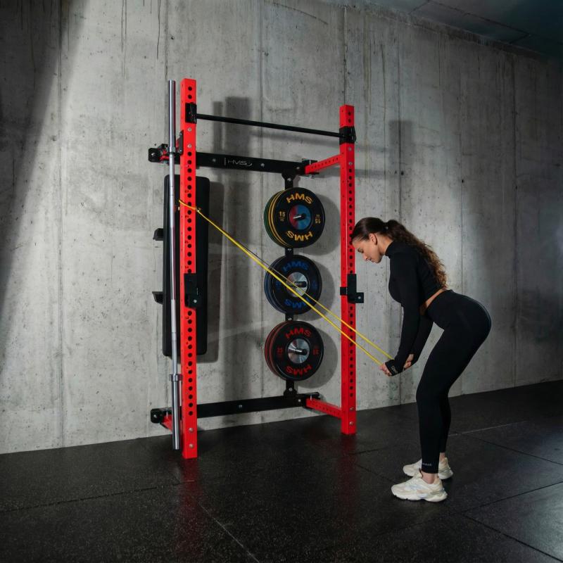 HMS KLT34 červený Multifunkční skládací posilovací stojan - Power Rack + doprava zdarma