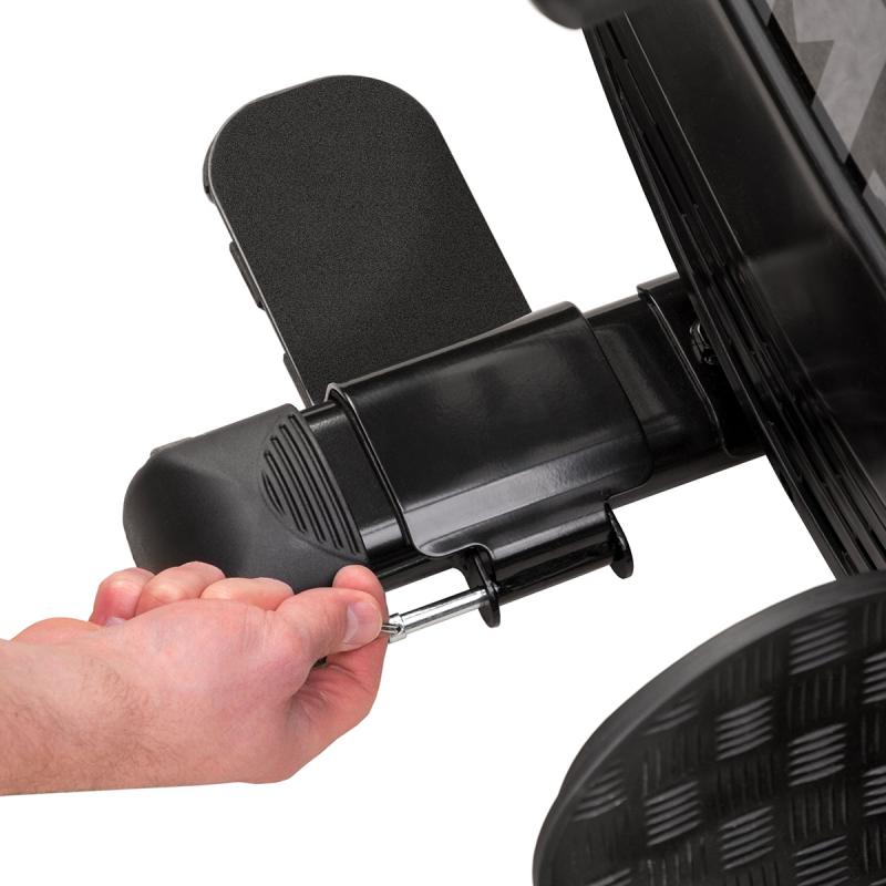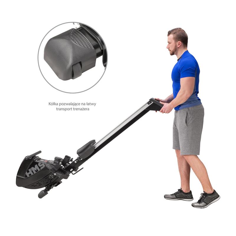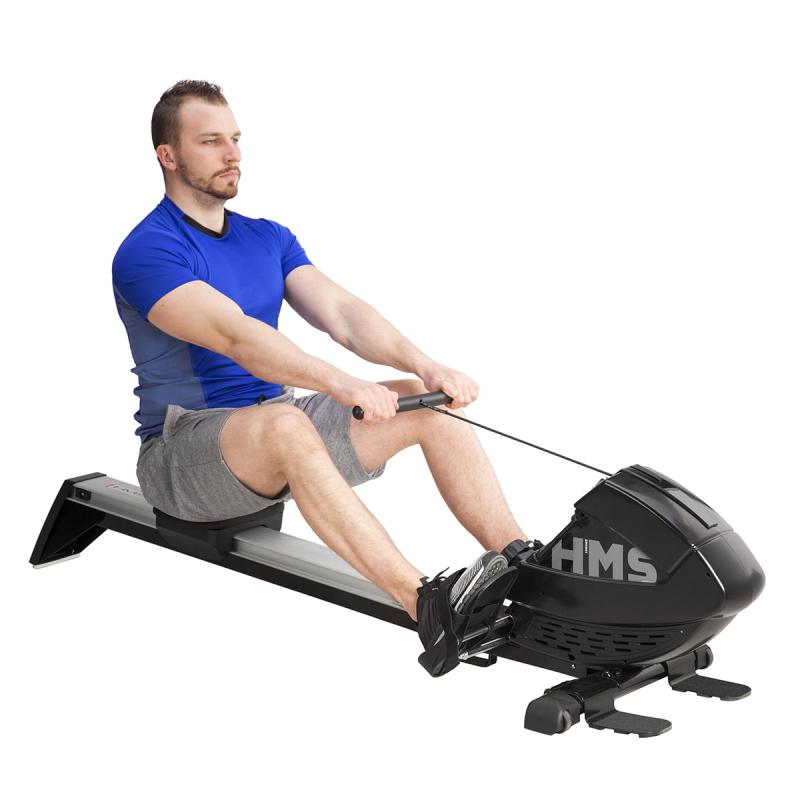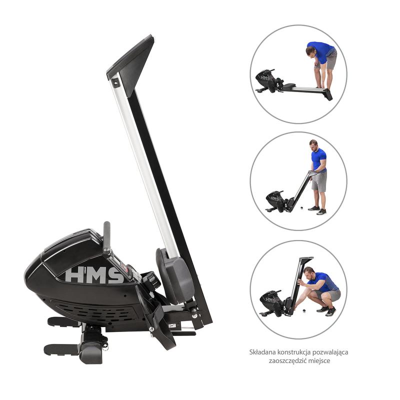 Veslovací trenažér HMS ZM1901 sa vyznačuje tichým chodom, jednoduchou obsluhou a možnosťou sklopenia koľajnice.