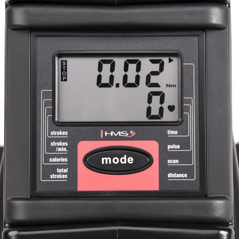 Všetky údaje potrebné na vyhodnocovanie tréningu sa zobrazujú na LCD displeji s rozmermi 77 x 43 milimetrov. Počítadlo meria čas tréningu, vzdialenosť, počet ťahov a po pripojení telemetrického pásu (nie je súčasťou produktu) spálené kalórie a tepovú frekvenciu. Pomocou tlačidla "MODE" môžete prechádzať medzi jednotlivými údajmi alebo zvoliť funkciu "Scan", ktorá v krátkych intervaloch postupne zobrazuje všetky merané hodnoty.