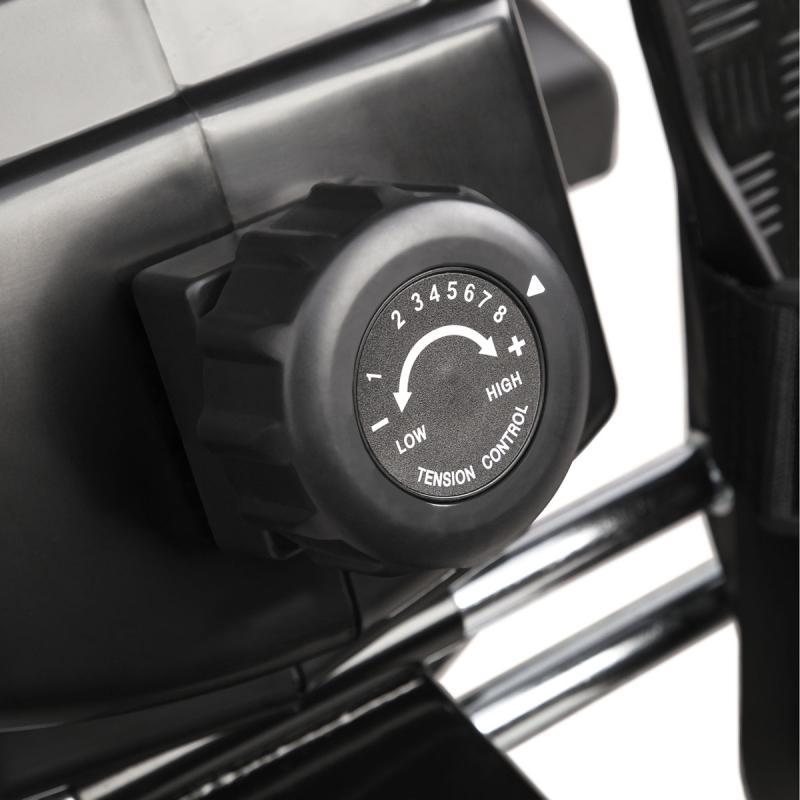 Systém záťaže tvorí navijak s lanom, ktoré sa vracia späť pomocou silnej pružiny, ktorej asistuje gumové lano vedené vo vnútri koľajnice, po ktorej sa pohybuje sedák. Samotná regulácia záťaže sa vykonáva v 8 stupňoch pomocou mechanického voliča, ktorým sa mení vzdialenosť medzi magnetom a 8-kilogramovým záťažovým kolesom, ktoré je spojené s navijakom. Tento systém je bezúdržbový a tichý.