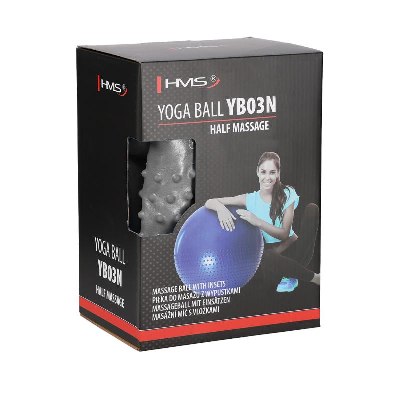 Gymnastický loptu je vyrobený z PVC v úprave Anti-Burst. Technológia Anti-Burst zabraňuje zväčšovaniu prípadnej trhliny a lopta sa tak, ak dôjde k poškodeniu, vyfukuje veľmi pomaly. Polovica lopty YB03N je pokrytá masážnymi výstupkami, ktoré počas tréningu príjemne masírujú pokožku, podporujú lepší prúd krvi a prispievajú k rýchlejšej regenerácii. Protisklzový povrch lopty zaručuje pohodlný tréning. Súčasťou balenia je ručná pumpička, pomocou ktorej je možné loptu nafúknuť, špunt a prípravok na vybratie špuntu z lopty. Priemer lopty by mal zodpovedať výške postavy, pre správny výber nájdete nižšie prehľadovú tabuľku.