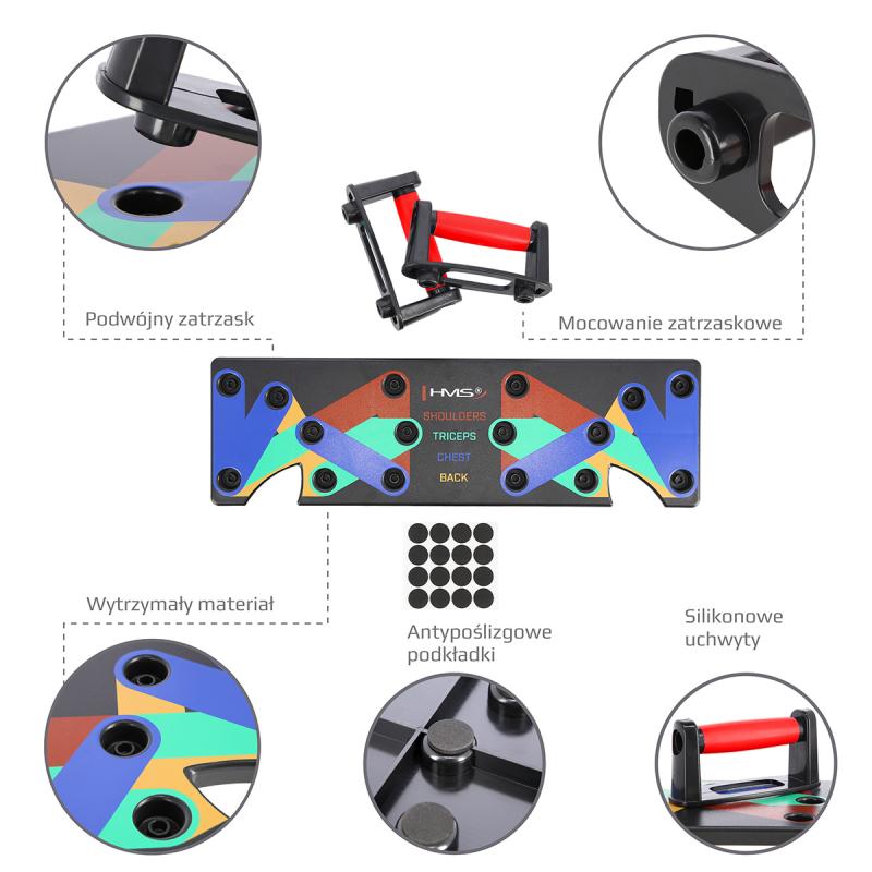 PU10 HMS je multifunkčná, skladacia doska, ktorá umožňuje variabilný tréning kľukov. Doska je symetricky rozdelená na 2 polovice. PU10 obsahuje 5 párov otvorov pre umiestnenie dodávaných podpier. Každý pár otvorov umožňuje tréning pod iným uhlom, kedy sa precvičuje iná svalová skupina a to: