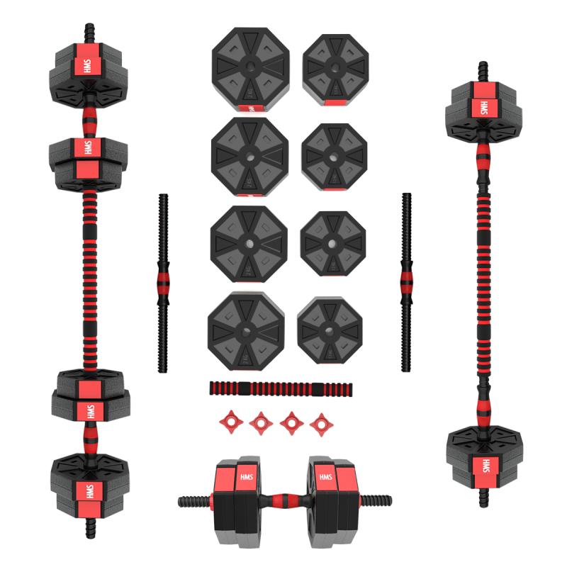 Kompletní nakládací sada dvou jednoručních a jedné obouruční činky o celkové hmotnosti 15 kilogramů, to je HMS SGC15. Nakládací činky patří ke klasickému vybavení každé domácí posilovny.
