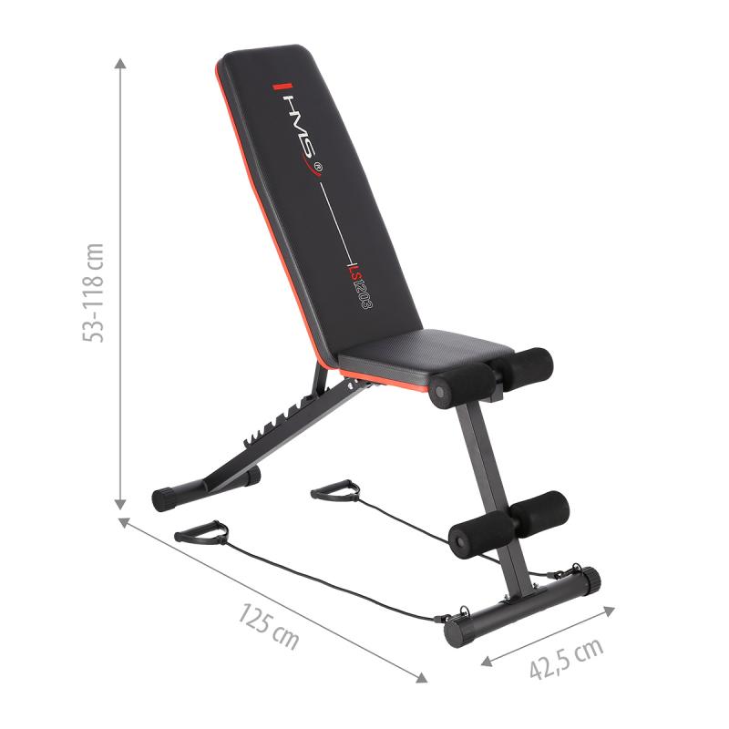 HMS LS1203 je multifunkční posilovací lavice, která je ideální pro domácí trénink. Nastavitelná zádová opěrka v sedmi úrovních od -30 do 60°, zarážka nohou nohou a gumové expandéry umožňují uživateli provádět mnoho nových a pokročilých cviků, což se promítá do efektivnějšího tréninku než dříve. Sluší se dodat, že lavička se velmi snadno sestavuje a po tréninku ji lze rychle složit.