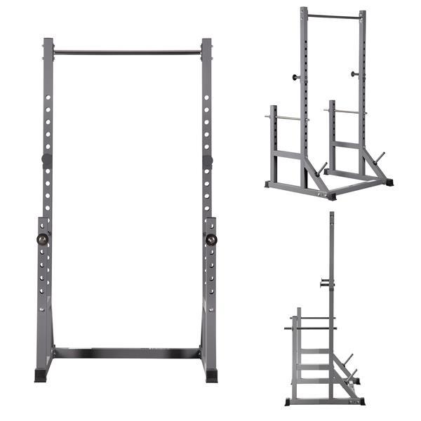 Robustní posilovací stojan s nastavitelnými držáky činky a bezpečnostními tyčemi pro bezpečný a efektivní silový trénink doma. Zobrazit celý popis