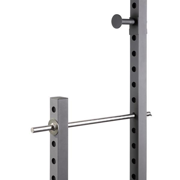 Power Rack PWS20 je vybaven hrazdou pro trénink přítahů. Kromě toho je stojan vybaven výškově nastavitelnými držáky činky, které lze přizpůsobit v 16 různých polohách. To umožňuje přesné nastavení výšky, což je nezbytné pro cviky s činkou, jako jsou dřepy a benchpress.