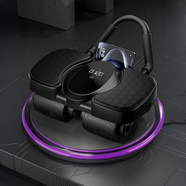 Posilňovací valec s automatickým návratom a štyrmi kolieskami ponúka stabilný a pohodlný tréning brušných svalov s LCD displejom a držiakom na telefón.