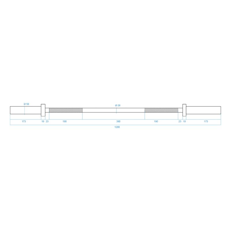 Průměr úchopové části je 28 mm a zajišťuje vysokou odolnost a pohodlí během tréninku. Použitý proces chromování hřídele je zárukou zachování jejího vzhledu po dlouhou dobu jejího používání a také je nejlepší ochranou proti korozi.